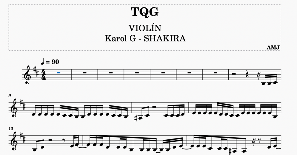 TQG VIOLIN PARTITURA - Karol G y SHAKIRA II Music Score for Violin *Partituras de musica MJ*